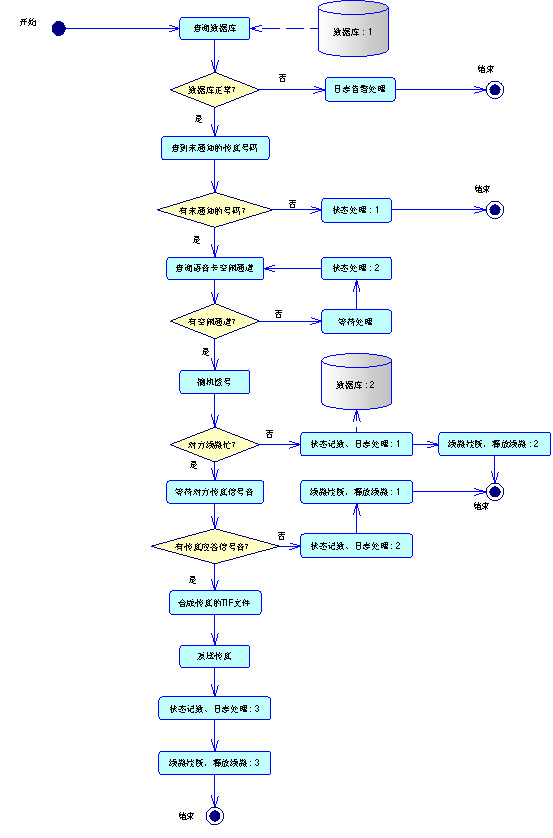 语音通知系统从数据库中查询需要通知的电话或传真号码及通知内容,通过电话语音卡拨号,自动识别线路信号,遇忙自动重拨,自动采集被通知人的确认按键等,全过程自动记录日志。