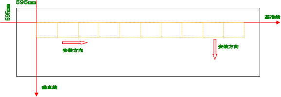 3)选一个墙角作为出发点,在墙面上找好水平,按照墙面水平需要高度,距墙面595mm处拴两条平行墙面的腊线,此腊线不易断裂和延伸,两条必须垂直分布。
