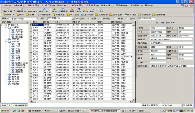人力资源管理用于建立员工人事档案,作为编写考勤、绩效、人员评测、薪资、售饭、门禁等管理模块的基础。并可依据人事资料,结合管理者的需要,对人事档案中的各个栏目进行分类统计、分类查询、对比分析,并输出打印成各种报表,作为人力分析的重要依据。宏力软件的报表通过导出和导入EXCEL应用程序,基本上实现了表单的自由定义,运用灵活,简便适用。行政事务管理主要集成了一些日常办公事项,招聘管理,图书管理,总务仓库管理,绩效管理,人员测评,通知文书规章制度管理,派车管理,固定资产管理,并能灵活统计出公司各项开支,生成各类统计分析报表,从而可以达到公司费用开支的统一管理,以降低不必要的开支。